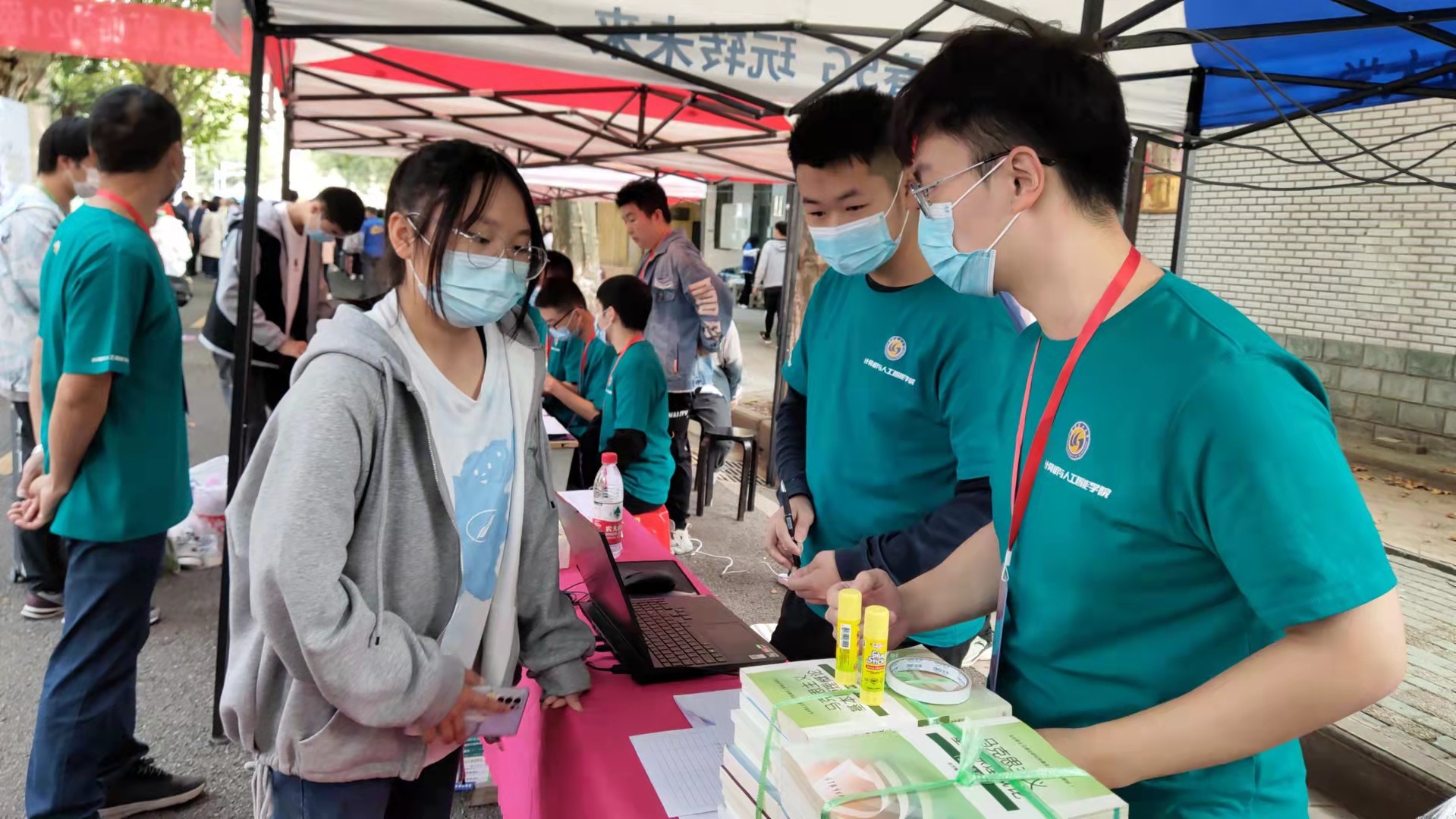 为了进一步贯彻、落实今年会的员工资助政策,今年会员工自强社于2021年10月9日在迎新现场对学校资助政策以及“旧书圆新梦”活动进行了相关宣传。同时向办理绿色通道的新生赠予部分教科书,向他们送去了来自学院的一份爱心,让家庭困难的员工真切地感受到国家、学校对他们的关怀,也让每一个需要帮助的员工感受到家一般的温暖。