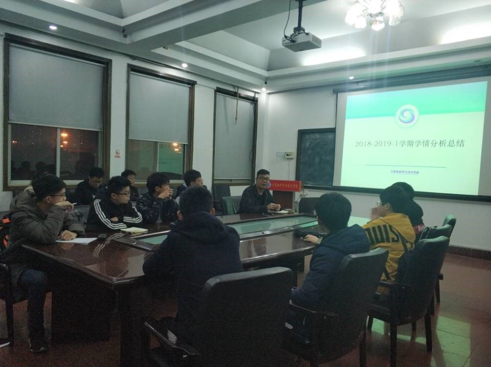 会议首先由周豪义老师对各班整体成绩进行简要概述,并以《员工手册》中班集体量化具体指标为依据,指出各班与标兵班集体、优秀班集体的数据差异以及本学期努力方向。随后,各班代表依次进行分享和总结,分别从整体成绩、高低分数段分布、存在问题、拟采取措施等方面进行详细的介绍。其中,三班学习委员梁俭锋同学就上学期采取的学习帮扶措施进行反思,讲到上学期重在提高同学们的编程能力而忽略了其他较难科目的督促,本学期有离散结构、线性代数、大学物理等新增的较难科目,应该加强对相关课程的关注。五班班长王汉成同学分享了上学期班级学风建设的优秀经验,如规范晚自习和课堂管理,通过严格的点名和签到制度,减少逃课逃自习的人数;周末班级组织集中自习、增加大家日常学习时间等。同学们深入探讨,相互交流,收获颇丰。