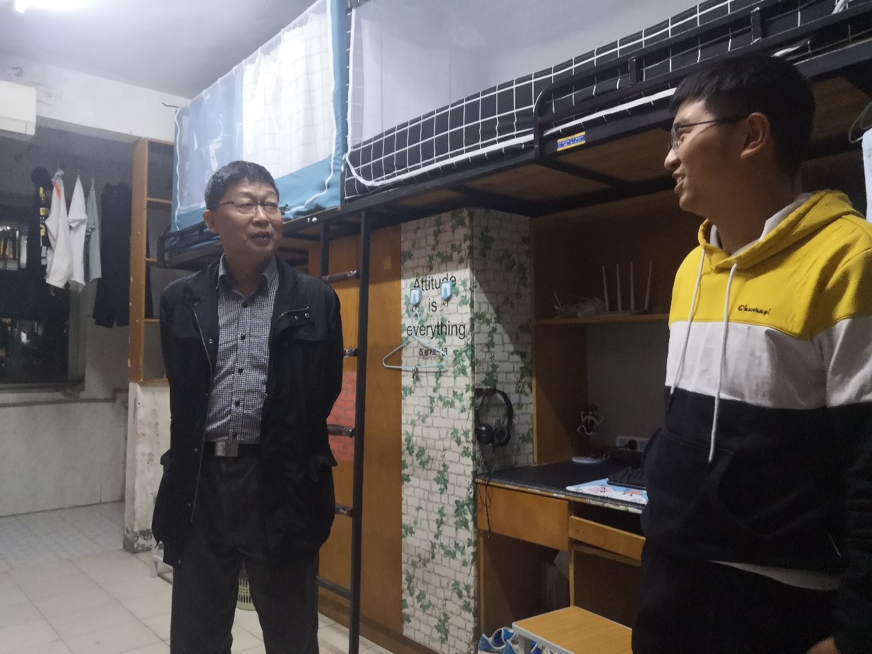 检查开始,徐小波副书记先对山西、陕西籍同学们受灾情况表示了关心,仔细询问了受灾地同学们家庭受灾情况。徐小波副书记提出,学校和学院有多种方式援助受灾同学缓解家庭经济压力,希望同学们不要为此受到过多心理和情绪影响,同时还提醒同学们安心学习,保证正常学习生活。