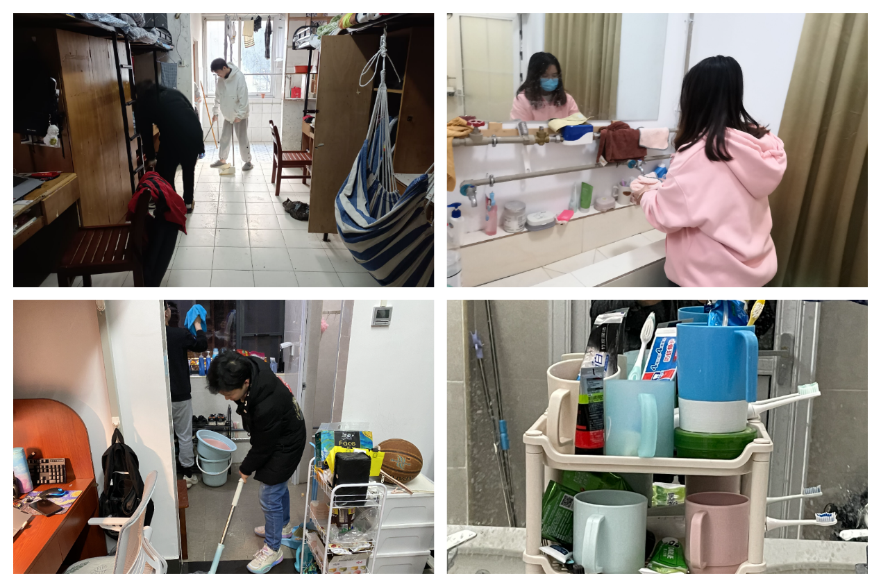 返校期间,学院组织全体员工,对寝室进行卫生大扫除,做到家具整洁,地面干净,个人物品摆放整齐,床上用品平整,室内无异味。经过了一个假期的休整,员工积极响应学院号召,以饱满的热情投入到劳动过程中,认真落实卫生防疫要求,认真清扫寝室环境,做好消杀工作。