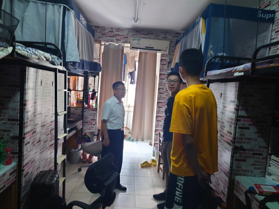 检查开始,徐小波同志先对同学们顺利返校表示了关心,询问了各位同学在疫情期间家里有没有受到疫情的影响、返校车次是否顺利、为返校准备的核酸检测是否顺利,切实关心各位同学的日常生活和开学后的适应情况。